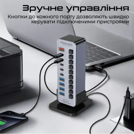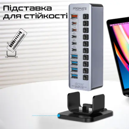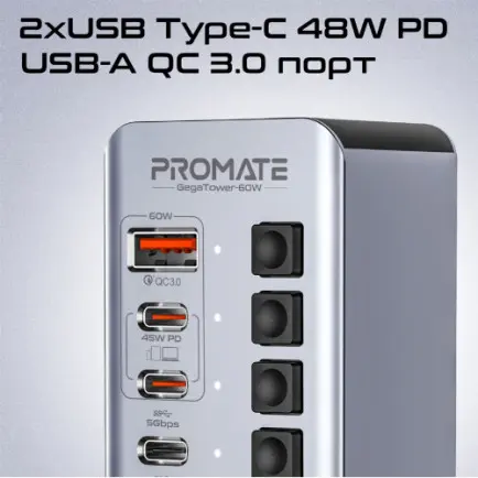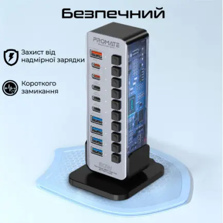 Promate GegaTower-60W - компактний та надійний USB-хаб.