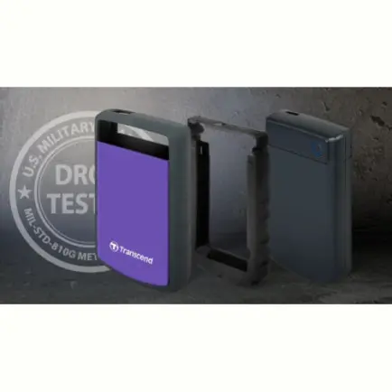 Триступінчастий захист від ударів StoreJet 25H3P відповідає військовим стандартам США захисту від падіння MIL-STD-810G і гарантує високий рівень безпеки інформації, що зберігається на накопичувачі. Трикомпонентна система захисту від ударів складається з прогумованого силіконового чохла, внутрішнього демпфуючого підвісу накопичувача та міцного жорсткого корпусу.