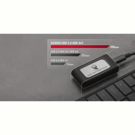 Застосування в SSD Kingston XS2000 нового інтерфейсу USB 3.2 Gen 2x2 забезпечує безпрецедентно високу швидкість обміну даними, аж до 2000 МБ/с в режимі запису та читання інформації.