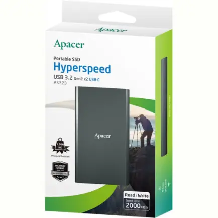 Портативний SSD Apacer USB 3.2 Gen 2x2 Type-C AS723 - це компактний зовнішній твердотільний накопичувач з високою швидкістю передачі даних завдяки інтерфейсу USB 3.2 Gen 2x2.