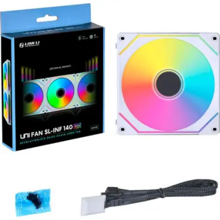 Вентилятори Lian Li SL-Infinity, поєднують у собі оригінальність Uni Fan SL та AL з відтінком нескінченного дзеркала, яскраво світяться з багатошаровими ефектами під будь-яким видимим кутом. Наслідуючи культовий стиль кутового підсвічування вентиляторів SL, вентилятори SL-Infinity мають 2 тонкі світлодіодні смуги з обох сторін лопаті вентилятора. Навколишні алюмінієві накладки розташовані по обидва боки рами. Геометрична форма нескінченного дзеркала повторює передню смугу підсвічування ARGB у верхній та нижній частині, що створює тривимірний вигляд із поглибленнями.