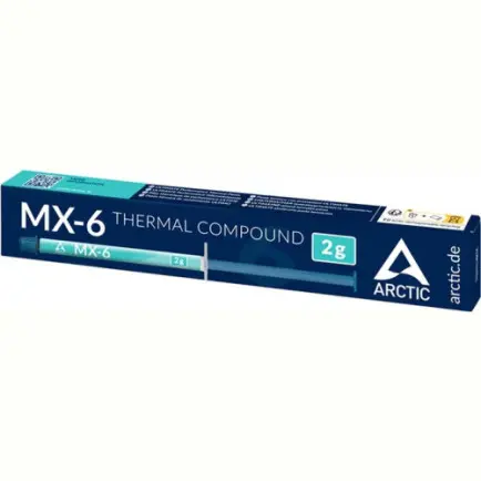 ARCTIC MX-6 - це термопаста на основі вуглецевого наповнювача, яка досягає максимальної продуктивності без вигоряння безпосередньо після нанесення та розподілу. При цьому вона досягає максимальних показників без використання будь-яких дорогих інгредієнтів, таких як діамантовий пил або різні частинки дорогоцінних металів. Силіконовий гель, що використовується як носій, забезпечує оптимальне розподілення, яке досягається за рахунок рівномірного контактного тиску, наприклад, при установці радіатора.