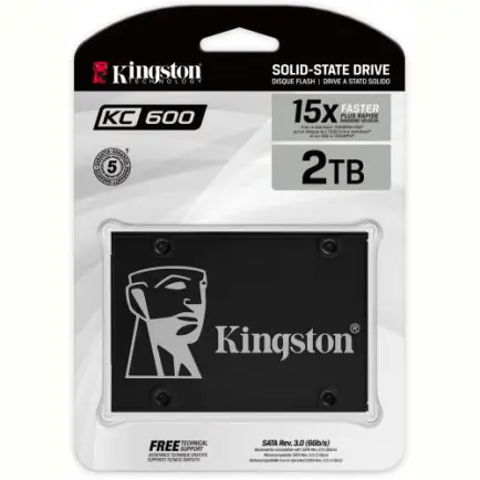 KC600 від компанії Kingston - це твердотільний накопичувач (SSD) повнофункціональної ємності, розроблений для забезпечення виняткової продуктивності і функціональної чуйності системи. Він відрізняється безпрецедентно малим часом початкового завантаження, а також високою швидкістю завантаження і передачі даних. Накопичувач поставляється в 2,5-дюймовому форм-факторі і оснащений інтерфейсом SATA 3.0 зі зворотною сумісністю.