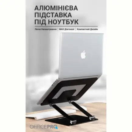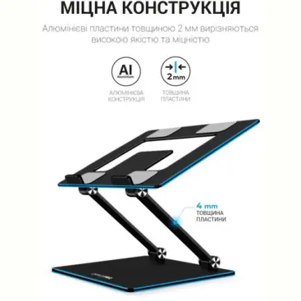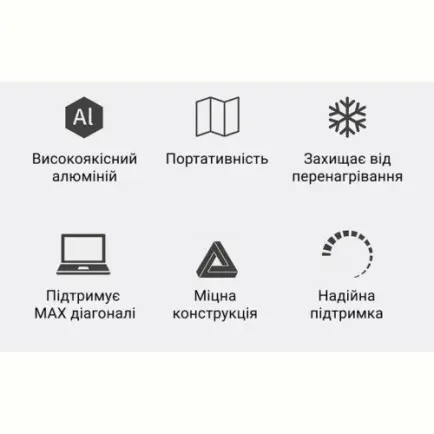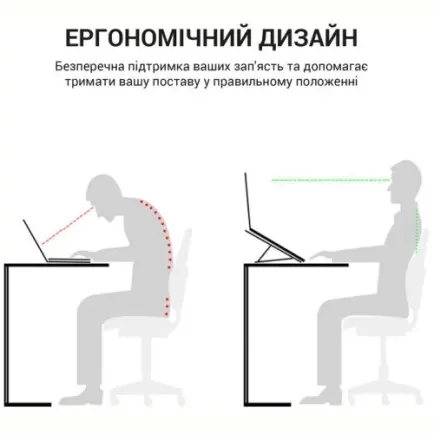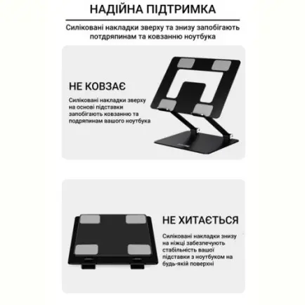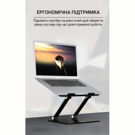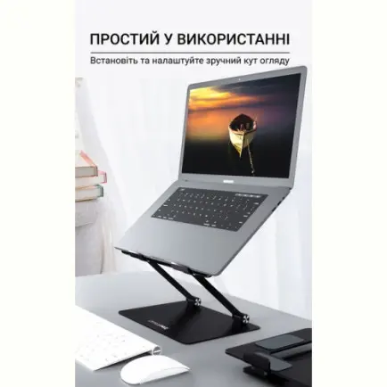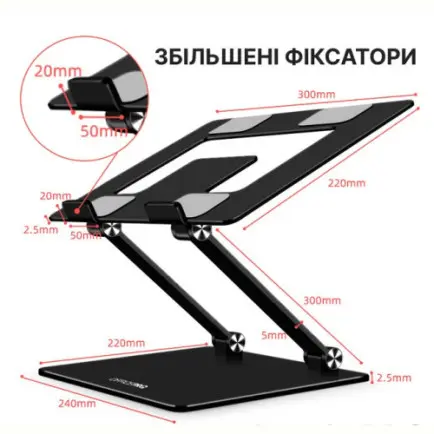 Повністю регульований кут нахилу: Дозволяє налаштувати кут нахилу підставки для досягнення оптимального положення ноутбука або іншого пристрою.