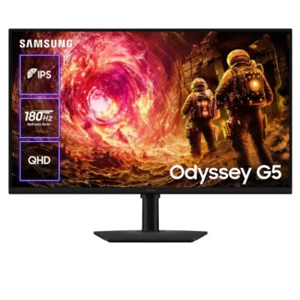 Монітор Samsung Odyssey G5 32" (LS32FG502EIXUA) - це плоска ігрова модель з IPS-панеллю і роздільною здатністю QHD (2560х1440). Діагональ екрана 32 дюйми, активна область становить 698,1х392,7 мм. Формат зображення стандартний - 16:9.