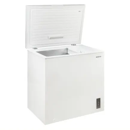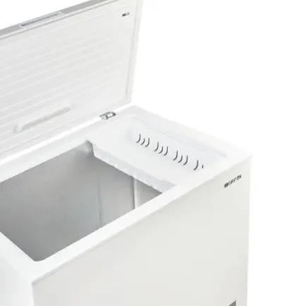 Снаружи на лицевой стороне размещен сенсорный регулятор температур и дисплей-индикатор работы ларя. Благодаря мощному компрессору DZ70X1H и хладагенту R600a морозилка способна за сутки заморозить до 9 кг продуктов. Энергоэффективность класса А++ позволяет потреблять до 200 кВт в год, при номинальном токе 1,0 А.