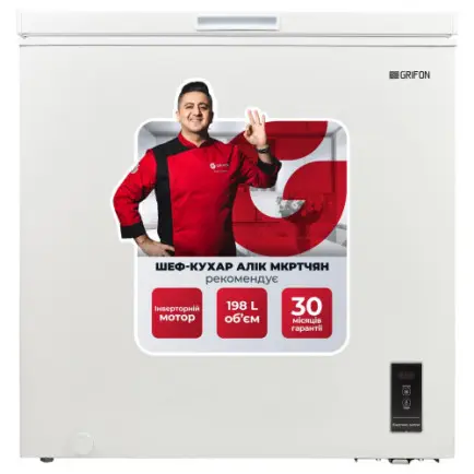 Наслаждаться свежими овощами и фруктами можно круглый год вместе с морозильным ларем GRML-200EI. Он рассчитан на долговременную глубокую заморозку продуктов, при этом потребляет немного электроэнергии. Инженеры бренда Grifon создали оптимальное решение в невысоком ценовом диапазоне, придерживаясь премиальных требований к качеству. Ларь покупают те, кому недостаточно небольшой морозильной камеры в холодильнике. Эта модель по своим размерам и вместительности подойдет для семьи из 4-5 человек.