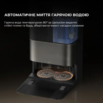 Получите чистый пол благодаря системе автоматической очистки насадок. Горячая вода температурой 80 градусов Цельсия удаляет стойкие пятна и жир, сохраняя моющие насадки свежими и готовыми к следующей уборке. Встроенный ингибитор накипи предотвращает ее накопление, обеспечивая длительную работу и защиту пылесоса.