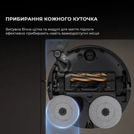 Благодаря технологии MopExtend Robo Swing пылесос Dreame проникает в углы и под мебель, а благодаря технологии SideReach справляется с удалением стойкой грязи в узких углах.