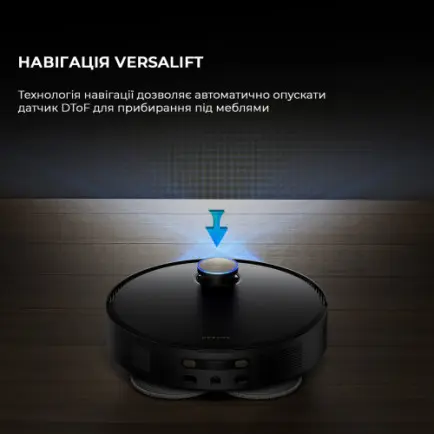 Пылесос X50 Ultra Complete улучшает работу сканирующего датчика на 360 градусов, создавая подробную карту без слепых зон для точной навигации без ненужного вращения. Технология навигации VersaLift интеллектуально втягивает датчик DTof, когда пылесос двигается под мебелью.