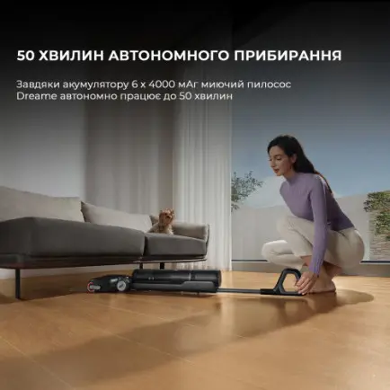 Убрать все комнаты в доме, прежде чем гаджету понадобится подзарядка? Без проблем! Благодаря аккумулятору на 4000 мАч моющий пылесос Dreame автономно работает до 50 минут. А это значит, что за один сеанс он охватит большую площадь уборки.