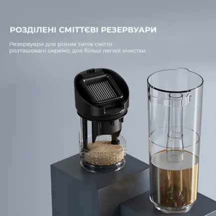 Конструкция моющего пылесоса предусматривает два раздельных бака для чистой и отработанной воды. Такое решение позволяет убирать за один подход большую площадь дома или квартиры. Также в баке для грязной отработанной воды предусмотрена система отделения твердых отходов от жидких отходов, что позволяет быстрее и легче очистить резервуар в конце уборки. Баки имеют объем по 400 мл каждый.