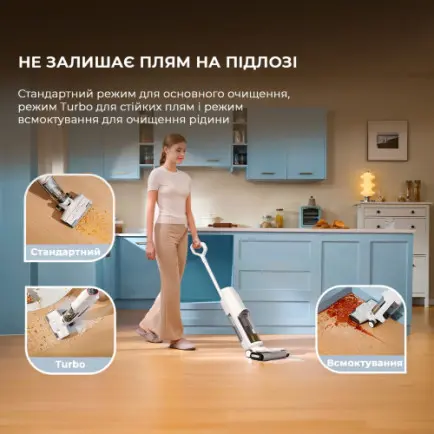 Щетка тщательно удаляет грязь вдоль плинтусов и в узких углах, придавая дому совершенно новый и идеально чистый вид.