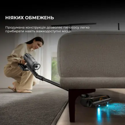 Dreame Z30 обладает высокой гибкостью благодаря своей продуманной конструкции и подвижному соединению между щеткой и основной трубой. Это позволяет пылесосу легко проникать в труднодоступные места, включая участки под мебелью, такие как диваны, кровати и шкафы. Благодаря тонкому профилю насадки и возможности наклонять ручку почти к полу, пылесос эффективно собирает пыль и грязь даже в самых узких пространствах, обеспечивая тщательную и комфортную уборку.