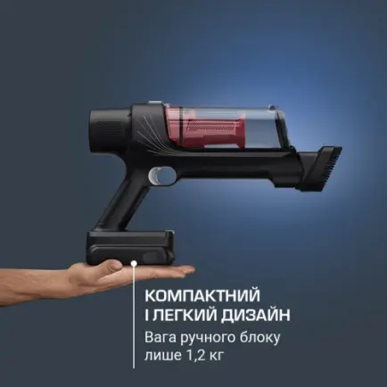Тонкий и легкий дизайн – всего 1,2 кг в портативном режиме и 2 кг в режиме ручного пылесоса – обеспечивает беспроводную уборку с абсолютным комфортом.