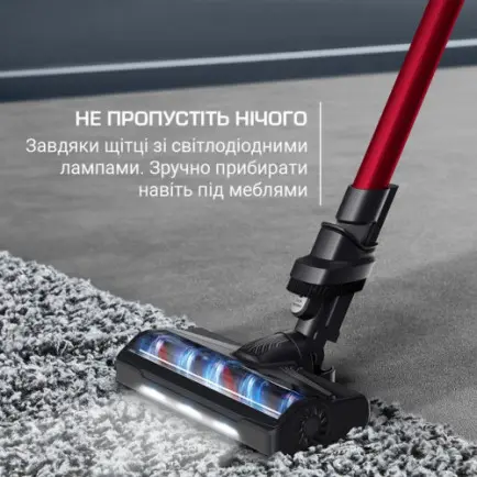 Высокопроизводительная щетка для эффективной очистки всех типов полов, ковров и ковровых покрытий — с подсветкой, позволяющей обнаруживать пыль везде.