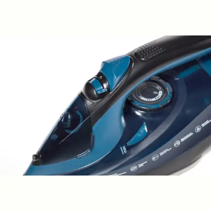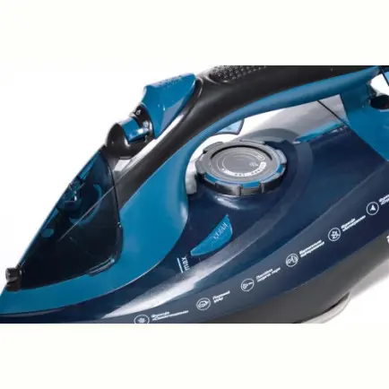 Диск регулятора температуры и кнопки управления выполнены из пластика. Удобное расположение кнопки парового удара под ручкой. На ручке утюга нанесен рельефный узор в виде элегантных капель. Удобное широкое отверстие для залива воды с резиновым уплотнителем.