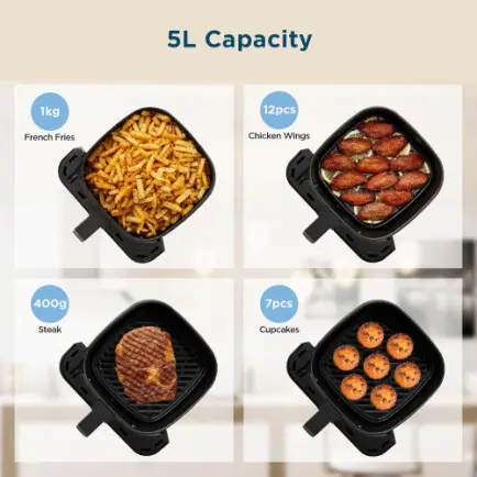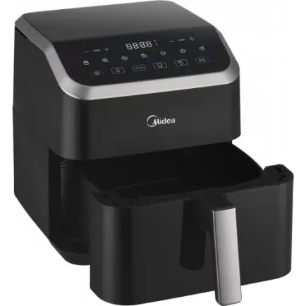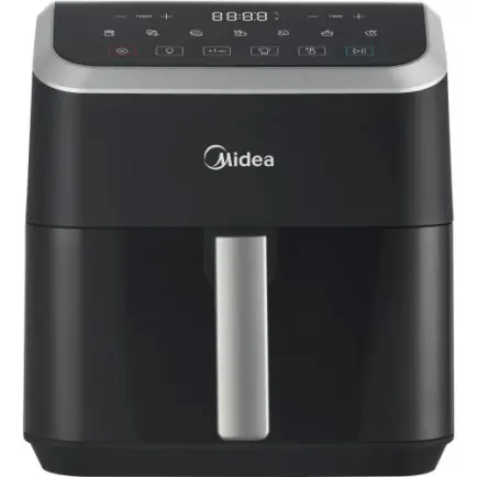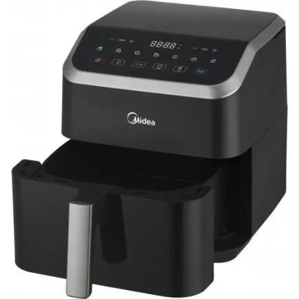 Мутльтипич Midea емкостью 5 л, технология HeatXpress На 90% меньше масла, экономия энергии и времени с 7 предварительными настройками, окно с легким обзором и освещением, антипригарное покрытие, корзина с возможностью мойки в посудомоечной машине. Midea, используя эксклюзивную технологию HeatXpress, готовит на 57% быстрее, чем в обычной духовке, экономя до 70% на счетах за электроэнергию.