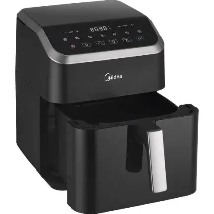 Фритюрница Midea, созданная для семьи, может похвастаться щедрым размером и предлагает на 15% больше места для приготовления, чем фритюрницы с двумя корзинами, что обеспечивает более равномерное прокаливание.