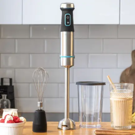 Благодаря селектору регулируемой скорости и функции Turbo погружной блендер CECOTEC с максимальной точностью адаптируется к потребностям любого рецепта. Низкие скорости идеально подходят для более мягких продуктов или взбивания яиц, а максимальная скорость и функция Турбо для смешивания твердых продуктов. Кроме того, блендер оснащен светодиодными светильниками с интуитивным и привлекательным дизайном.