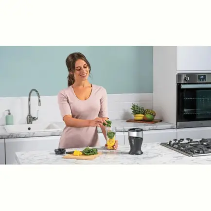 Блендер Nutri Ninja 700W Slim Smoothie Maker сочетает в себе исключительную производительность и высочайшую точность, что позволит вам за считанные секунды взбивать и смешивать любые ингредиенты, в том числе цельные фрукты и овощи, орехи, семена и даже лед.