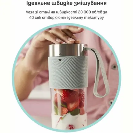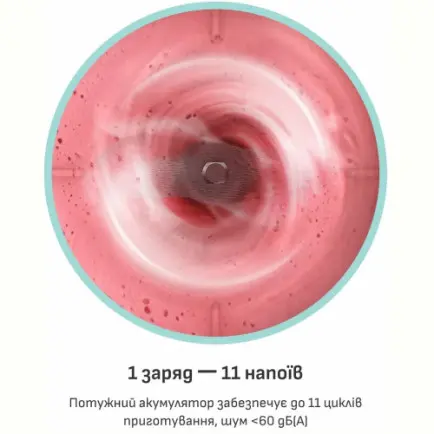 Благодаря мощному литий-ионному аккумулятору емкостью 1200 мАч блендер не требует частой зарядки. 1 заряд гарантирует до 11 циклов приготовления различных напитков. Процесс смешивания тихий и комфортный, ведь уровень шума <60 дБ(A), как во время обычного разговора.