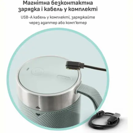 Никаких лишних отверстий - заряжать блендер очень легко благодаря кабелю с выходом USB-A. Подключать зарядное устройство можно как к переходнику так и к USB разъему компьютера.
