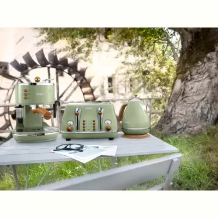 Электрочайник Delonghi KBOV 2001.GR дизайнерской серии Vintage Icona станет украшением вашей кухни. Необычная, пингвинообразная форма выглядит изысканно и привлекательно. Прибор украсит вашу кухню и будет долго радовать взгляд. Корпус украшен в нижней части узким хромированным пояском.