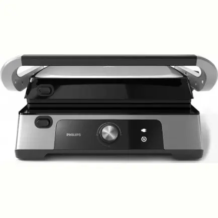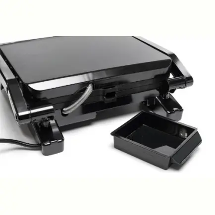 Угол открытия конструкции можно настраивать на 105 или 180, что позволяет использовать гриль как в закрытом, так и в открытом положении. Съемный поддон для сбора капель жира помогает поддерживать чистоту на кухне.