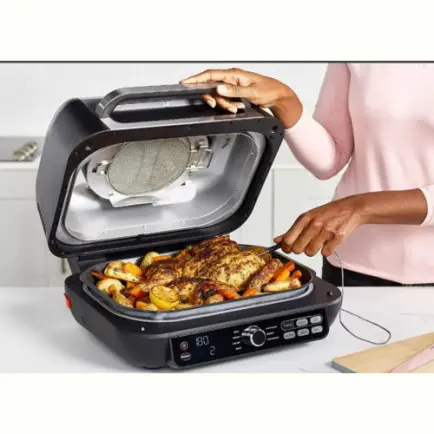 Обычные блюда становятся незабываемыми и не требуют столько усилий и хлопот с технологическим грилем Ninja! Готовьте с открытой или закрытой крышкой, используйте две сменные пластины, почувствуйте все преимущества термощупа и получайте 4-6 порций за один цикл.
