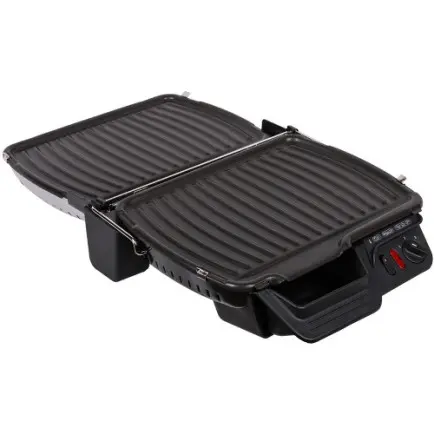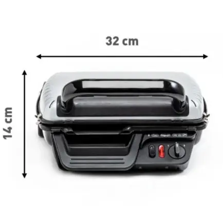 Контактный гриль GC305012 — это компактный функциональный прибор в прочном стальном корпусе. Разобраться с его механическим управлением просто: конструкция предполагает регулировку температурных режимов и рабочих пластин.