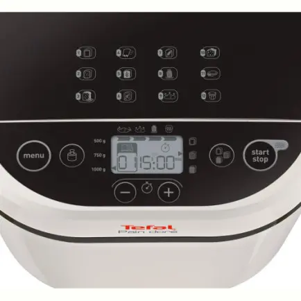 Хлебопечка Tefal Pain Dore PF210138 предлагает 12 автоматических программ. Среди них программ для хлебной выпечки и дополнительные программы, позволяющие готовить в этом аппарате ещё и джем, каши, крупы. Кроме базовых и ожидаемых сортов хлеба (классический, ржаной, французский) присутствует режим для хлеба без глютена, 2 режима быстрой выпечки. Особенно порадует хозяек режим замеса дрожжевого теста, которые позволит приготовить пельмени, пиццу, пирожки с меньшими усилиями.