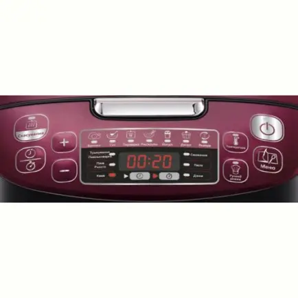 Светодиодная панель управления располагается прямо на крышки мультиварки. С помощью удобных кнопок вы сможете выбрать программу и активировать дополнительные функции. На цифровом дисплее отобразятся выбранные настройки. Также на нем выводится оставшееся время приготовления пищи.
