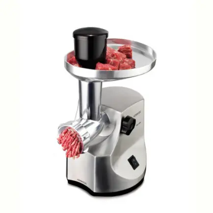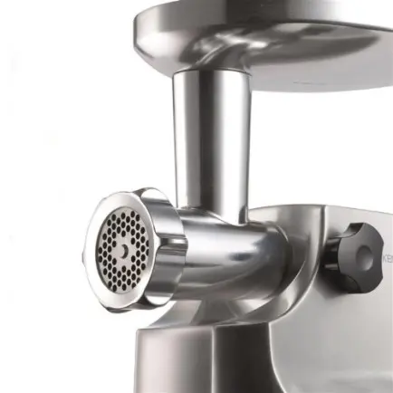 Мощная и функциональная мясорубка не требует долгого изучения инструкции, ее управление достаточно просто. Всего одна кнопка. Благодаря наличию насадок, мясорубка делает фарш разной зернистости, вы можете готовить домашние колбаски, нарезать и шинковать овощи.
