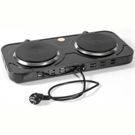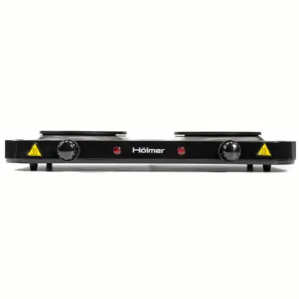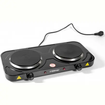 Настольная плита Holmer HHP-220B питается от стандартной электрической сети на 220 - 240В. Суммарная мощность конфорок составляет 2000Вт (левая мощностью 1кВт + правая мощностью 1кВт).