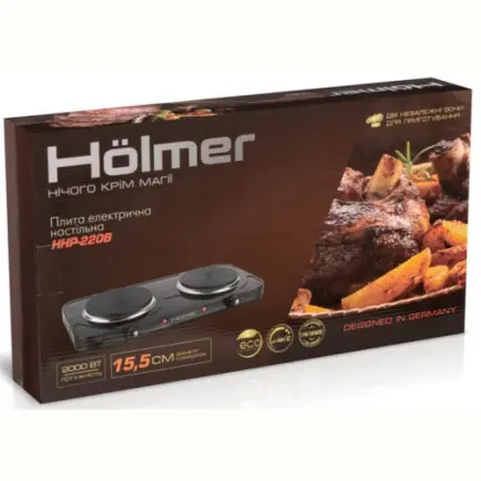 Holmer HHP-220B имеет специальный термостат, который защищает ее от перегрева. Эта функция обеспечивает безопасность пользования и продлевает срок службы электрической плиты.