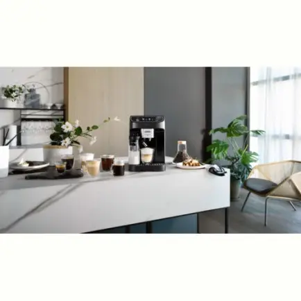 Модель DeLonghi ECAM 320.60 B Magnifica Plus принадлежит к изделиям среднего класса и предоставляет своему владельцу широкий ассортимент кофейных напитков. При потреблении в рабочем режиме 1450Вт, она способна в считанные секунды приготовить и разлить чашками эспрессо, а также производные напитки и коктейли на его основе. Удобное сенсорное меню с 3,5-дюймовым цифровым дисплеем, интуитивно понятные настройки – здесь все сделано для максимального комфорта пользователя! Система LatteCrema Hot обеспечивает образование невероятной и такой желанной молочной пенки. Встроенная кофемолка с возможностью регулировки степени помола поможет в полной мере раскрыть вкус и аромат зерен любого сорта в соответствии с конкретной рецептурой. Более того, вы также можете создать и сохранить в памяти устройства рецепты кофейных напитков. Прибор автоматически выключается через заданный период времени, поэтому вам не придется беспокоиться и об этом.
