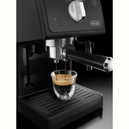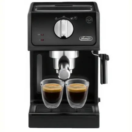 Кофеварка DeLonghi ECP 31.21 BK – стильное и простое в использовании устройство. Красивый пластиковый корпус, приятная форма – такая кофеварка украсит любую кухню. Давление помпы в ней составляет 15 бар, благодаря чему вы получите отличный эспрессо. С ней вы без проблем приготовите любой кофейный напиток. Кофеварка имеет профессиональный холдер фильтров и фильтры для приготовления 1-2 чашек, а также фильтр, который понравится любителям использовать чалды.