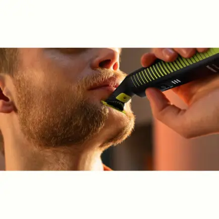 Электример Philips OneBlade не бреет так близко к коже, как традиционная бритва – поэтому вашей коже комфортно. Минимальная длина бритья без насадок 0.1 мм. Двигайтесь против роста волос и легко сбривайте щетину любой длины на лице.