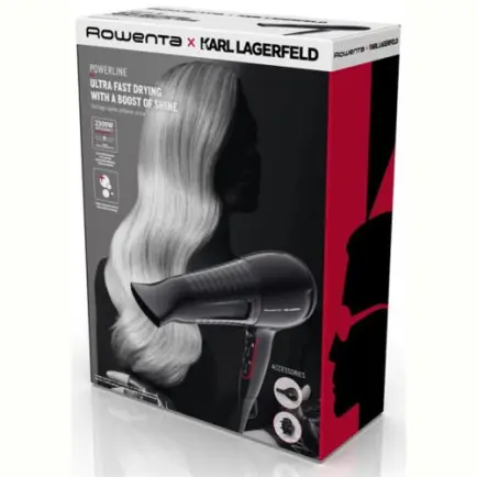 Фен Rowenta POWERLINE KARL LAGERFELD CV591LF0. Откройте для себя идеальную укладку с легким блеском, которая всегда привлекает внимание! Фен Rowenta x KARL LAGERFELD Powerline обеспечивает энергосберегающую мощность, а ионный усилитель уменьшает завивку и делает ваши волосы гладкими, послушными и придают сияющий блеск. Откройте для себя идеальный фен, дополненный интеллектуальными функциями, такими как легкая регулировка скорости/температуры для полного контроля над укладкой, термоконтроль для защиты ваших волос.
