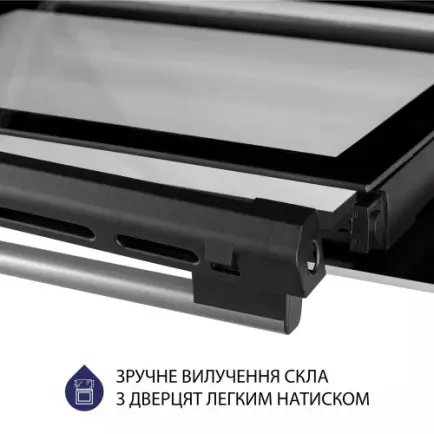 Стекло можно легко удалить. Просто нажмите специальные кнопки с обеих сторон дверцы. Это значительно упрощает процесс очищения.