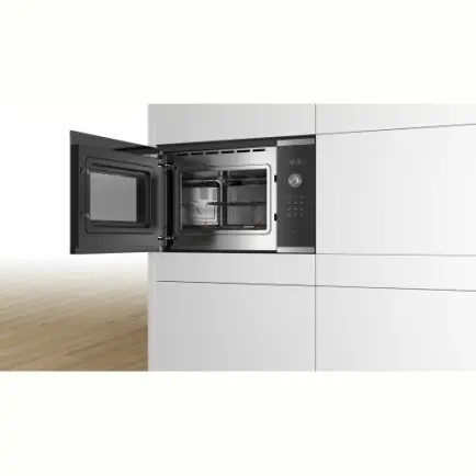 Встроенная микроволновка Bosch BEL554MS0 сочетает в себе современный дизайн, удобство использования и широкий функционал. Прибор имеет 5 уровней мощности микроволн – 90, 180, 360, 600 и 900 Вт – что позволяет точно настроить режим для разогрева или приготовления пищи. Благодаря 8 автоматическим программам размораживания и приготовления блюд, пользователю нужно выбрать тип продукта, а остальную микроволновку сделает сама.