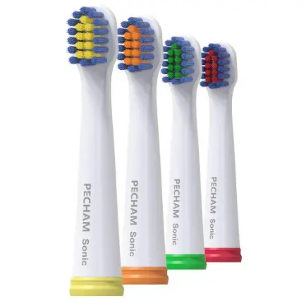 Насадки на зубные щетки Pecham совместимы с электрощетками бренда. Корпус насадок изготовлен из качественного пластика ABS/TP, нейлоновые щетинки синего цвета содержат индикаторы, меняют цвет при полном износе.
