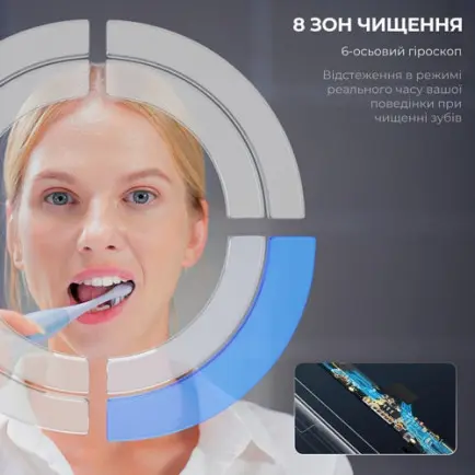 Благодаря 6-осевому гироскопу вы можете наблюдать за процессом чистки зубов в реальном времени, чтобы обеспечить максимальную чистоту вашего зубного ряда. Также данные очистки будут доступны в фирменном приложении OcleanCare.