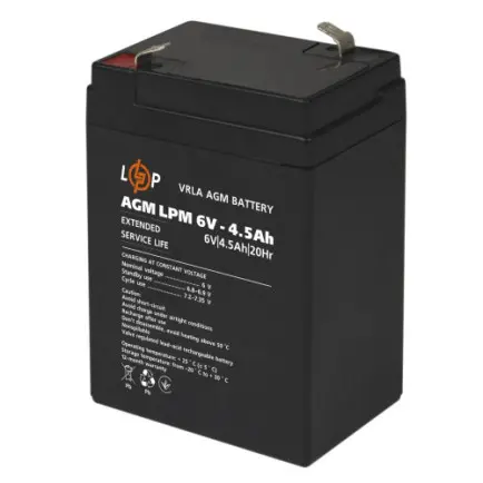 Мелковольтный свинцово-кислотный аккумулятор АКБ LPM 6-4.5 AH – это надежное в эксплуатации устройство, изготовленное с применением современной технологии AGM (Absorbent Glass Mat), что говорит о высоких качественных и технических характеристиках аккумулятора и его более длительном сроке эксплуатации.