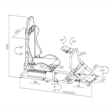 Характеристики Кресло-кокпит с креплением для руля, педалей и коробки передач GamePro RS100