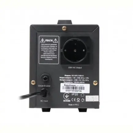 | Мощность полная, ВА | 1000 |