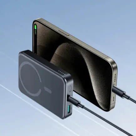 Мощные магниты обеспечивают надежную фиксацию устройства во время зарядки. Повербанк отлично работает с устройствами iPhone с функцией MagSafe. При зарядке одного устройства беспроводная зарядка выдает мощность до 15 Вт.