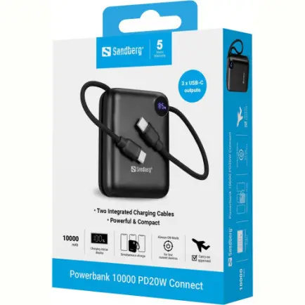 Берите Sandberg 10000mAh 20W на борт самолета, она отвечает стандартным требованиям авиакомпаний к размеру или безопасности.