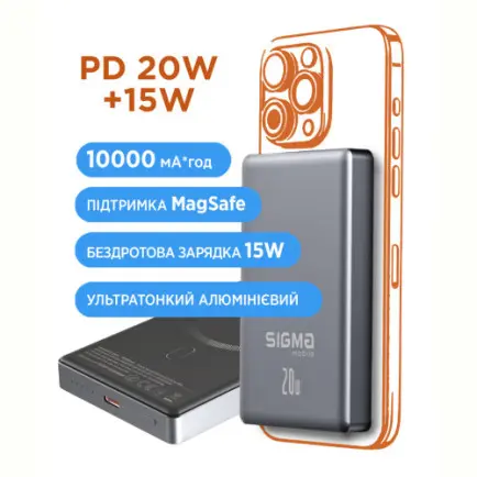 Повербанк Sigma mobile SI10A7QL-MAG: компактная мощность и беспроводная зарядка MagSafe 15W